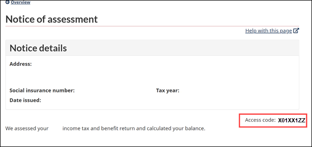 If you’re viewing your NOA in CRA My Account or using the Express NOA service in the tax software, your NAC is labelled Access code and can be found under the Notice details box.