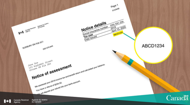 Your unique NAC code is located on the right side of your Notice of Assessment (NOA) for the previous tax year. On the paper version of your NOA, the NAC can be found on the right side under Date issued.