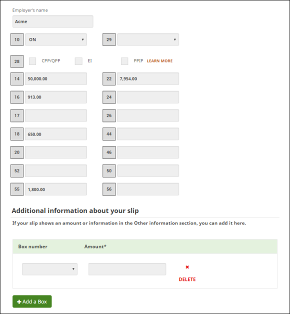 For example, some slips have many boxes, most of which might not apply to your situation. Rather than having dozens of extra boxes you don’t need appear on the page, we display the most commonly used boxes and allow you to add any additional boxes that are shown on your paper slip. This helps to keep the pages in our software short and easy to work through: