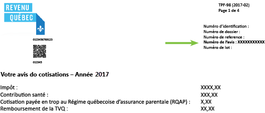 - The notice number from your 2022 or 2023 Revenu Québec notice of assessment