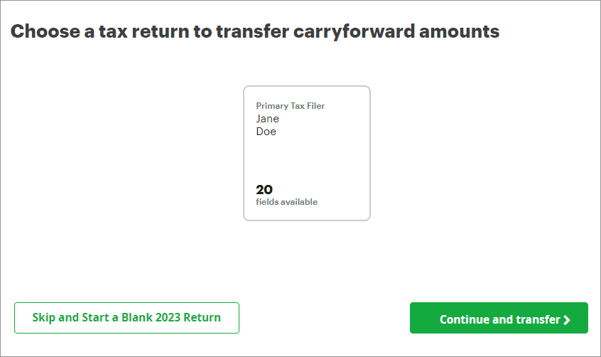 Carry forward my return: Transfer your 2023 information into your 2024 return