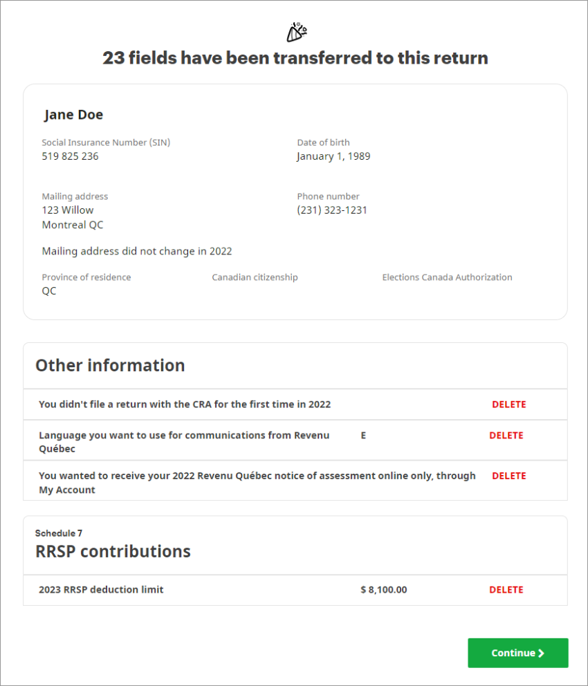 If you don’t want to transfer your 2023 information into your 2024 return, don’t worry – you can use the information on your latest notice of assessment (NOA) or notice of reassessment to complete your 2024 return.