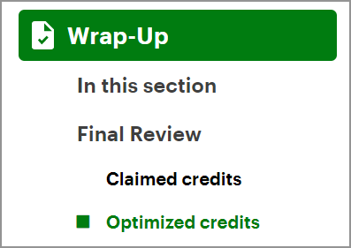 To choose who will claim the medical expenses on the Wrap-Up tab, under Final Review, click Optimized Credits.