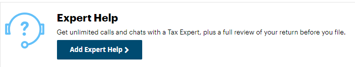 On the H&R Block help & support page, click Add Expert Help under the Expert Help section.