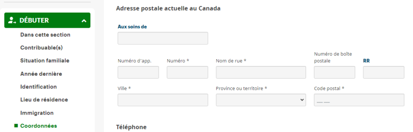 Bien que cette erreur ne vous empêche pas de produire vos déclarations, si vous avez des renseignements additionnels à ajouter (comme le site ou la succursale postale), vous pouvez les entrer dans les champs Numéro et Nom de rue pour faire disparaître ce message d’erreur.