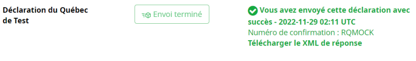 Remarque : si vous avez transmis une déclaration de revenus du Québec, vous verrez également votre numéro de confirmation ImpôtNet Québec à cet endroit.
