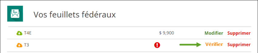 Remarque : si vous avez vérifié vos renseignements et que l'icône ne devient pas verte, vous pouvez ignorer l'avertissement Vérifier et continuer la préparation de vos déclarations de revenus.
