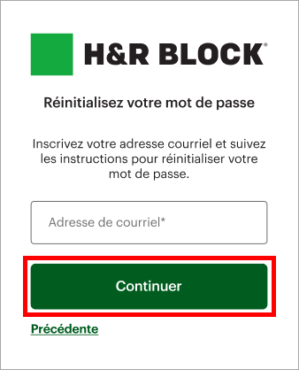 Sur la page Réinitialisez votre mot de passe, inscrivez votre courriel et cliquez sur Continuer.