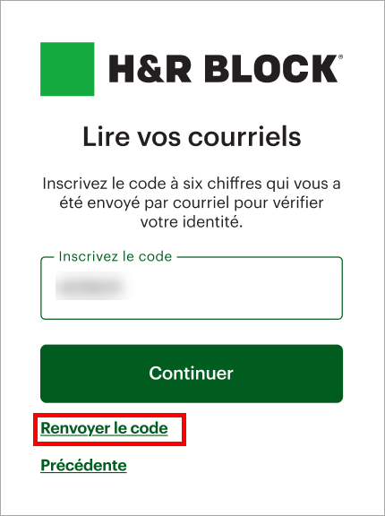 Si vous avez demandé le code à usage unique et que vous ne l’avez pas reçu, vous pouvez renvoyer le code à votre adresse courriel.