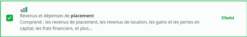 Cochez la case Revenus et dépenses de placement.