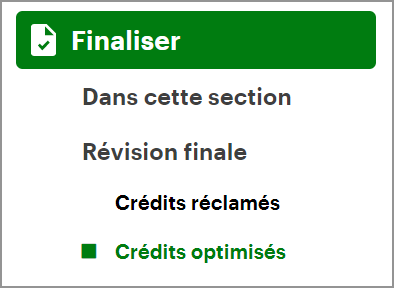 Pour choisir qui demandera les frais médicaux, sur l'onglet Finaliser, sous Révision finale, cliquez sur Crédits optimisés.