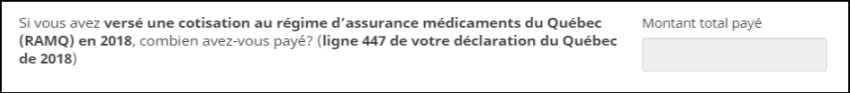 Oui. Si vous deviez payer une cotisation au régime d'assurance médicaments du Québec (RAMQ) en 2023, vous pouvez déduire cette cotisation comme frais médicaux dans votre déclaration de revenus fédérale de 2024. Pour ce faire, entrez le montant de la ligne 447 de votre déclaration de revenus du Québec de 2023 dans le champ indiqué ci-dessous à la page Frais médicaux :