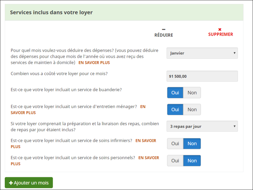 Si vous avez reçu les services inclus dans votre loyer tous les mois de l’année, cliquez simplement sur le bouton +Ajouter un mois et répétez l’opération pour les mois de février à décembre.